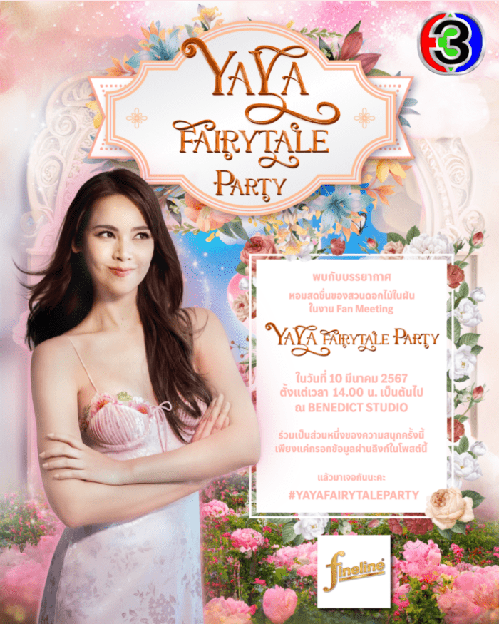 ในที่สุดวันนี้ก็มาถึง เมื่อ ช่อง 3 จัดให้ตามคำเรียกร้องของเหล่าแฟนคลับที่อยากใกล้ชิดแบบเอ็กซ์คลูซีฟกับนางเอกสาวสวยสุดฮอต ญาญ่า อุรัสยา ในงานแฟนมีตติ้ง “YAYA FAIRYTALE PARTY” เตรียมพบกับความสนุก น่ารัก สดใส และโชว์พิเศษที่เจ้าตัวแอบทำเซอร์ไพรส์มามอบให้แฟน ๆ แบบจัดเต็ม ท่ามกลางบรรยากาศหอมสดชื่นของสวนดอกไม้ชวนฝัน และนอกจากนี้ยังมีกิจกรรมอีกมากมายที่เตรียมมาให้เหล่าแฟนคลับได้มาร่วมสนุก และมีความสุขไปพร้อมกัน ให้สมกับที่รอคอยกันมานานทีเดียว
