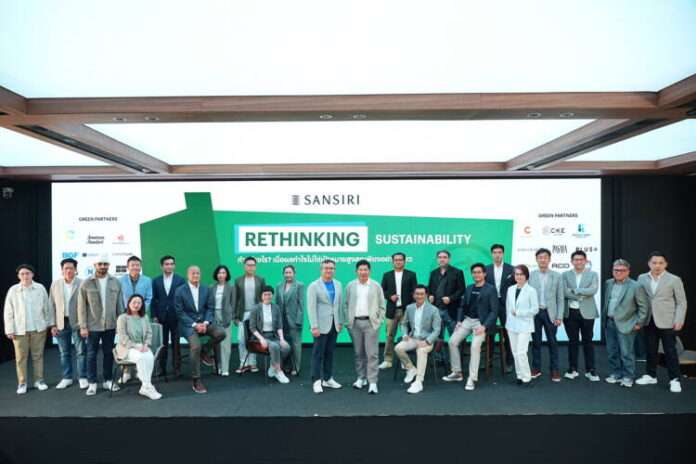 นายอุทัย อุทัยแสงสุข กรรมการผู้จัดการใหญ่ บริษัท แสนสิริ จำกัด (มหาชน) ผู้ประกอบธุรกิจพัฒนาอสังหาริมทรัพย์ชั้นนำของไทย เปิดเผยว่า แสนสิริเป็นองค์กรธุรกิจขนาดกลางที่ได้ริเริ่มสร้างกลยุทธ์ในด้านความยั่งยืนมากว่า 10 ปี หรือปัจจุบันเราเรียกว่า ESG (Environmental, Social และ Governance) เราพบว่ากลุ่มที่เป็นกุญแจสำคัญในการขับเคลื่อนการเปลี่ยนแปลงเศรษฐกิจไปสู่ความยั่งยืนคือกรีนพาร์ตเนอร์และความร่วมมือใน Ecosystem เป็นพลังสำคัญในการสนับสนุนให้ประเทศไทยบรรลุเป้าหมายสู่การพัฒนาที่ยั่งยืน ไม่ว่าจะเป็นหน่วยงานกลางที่กำหนดนโยบายและวางโรดแมปของประเทศ ภาคเอกชนที่ร่วมเป็นกรีนพาร์ตเนอร์กับแสนสิริในครั้งนี้ที่มาจากภาคสังหาริมทรัพย์ วัสดุก่อสร้าง สถาปัตยกรรมการออกแบบ และพลังงานสะอาด ต้นน้ำสำคัญในการนำนวัตกรรมมาพัฒนาต่อยอดสินค้าและบริการ รวมถึงภาคสื่อสารมวลชนที่มีส่วนสำคัญในการเผยแพร่ข้อมูลข่าวสารให้ประชาชนและผู้บริโภคตระหนักในเรื่องความยั่งยืนโดยเฉพาะด้านสิ่งแวดล้อมที่ปัจจัยสำคัญที่นานาชาติให้ความสำคัญ
