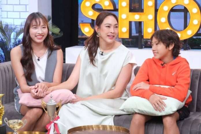 ตุ๊ก : ปีนี้เป็นเรื่องราวการเปลี่ยนโรงเรียน พี่สาวไปเรียนก่อน รับส่งสองโรงเรียนอยู่ประมาณ 3 ปี ก็โอ้โห กระอักนิดนึง เขาก็สนใจและชอบ มีโอเพ่นเฮ้าส์ ที่สาธิต ม.ธรรมศาสตร์ จริงๆ เป็นหลักสูตรที่ใหม่มาก แพรวเป็นปีที่ 5 ภูมิเป็นปีที่ 8 เขาไปดูโอเพ่นเฮ้าส์แล้วเขาชอบ เขามีวิธีสอบเข้าที่ไม่เหมือนที่ใด จะวัดความเป็นมนุษย์ในตัวเด็ก วัดแอดติจูด วัดนิสัย การเข้าสังคม เขาก็ทำคะแนนได้ค่อนข้างดี เลยเข้าใจ เพราะลูกจะแข่งเยอะ มีถ้วยมีอะไร นักข่าวจะสัมภาษณ์บ่อย เราก็ภูมิใจและยินดีด้วยนะ แต่เราไม่ได้อินเพราะเราไม่ใช่สายกีฬา เราเป็นเด็กเนิร์ด พอเรื่องนี้เรารู้สึกว่า นี่แหละที่เราสร้างเขามาทั้งชีวิต ที่เราพยายามเลี้ยงเขามาทั้งชีวิต แล้วเขาเป็นเด็กที่โอเค โรงเรียนยอมรับว่าเป็นเด็กที่น่ารัก ก็ดีใจ