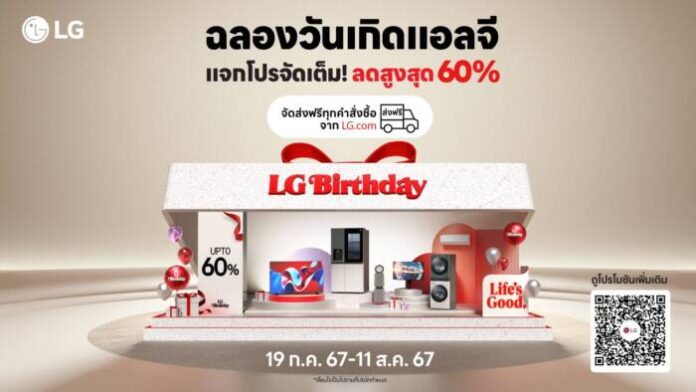 - แอลจี ยังจัดแคมเปญพิเศษ ลดกระหน่ำ ฉลองวันเกิดครบรอบ 36 ปี ลดราคาแรงถึง 60% เฉพาะ com และ LG Official Store ทุกช่องทางออนไลน์