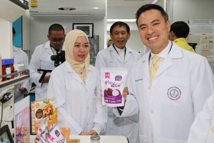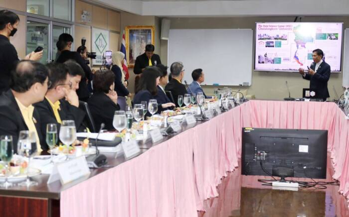 วันจันทร์ที่ 7 ตุลาคม พ.ศ.2567 นายเอกณัฐ พร้อมพันธุ์ รัฐมนตรีว่าการกระทรวงอุตสาหกรรม นำทีมงานเข้าเยี่ยมชมกิจการของศูนย์วิทยาศาสตร์ฮาลาล จุฬาลงกรณ์มหาวิทยาลัย (ศวฮ.) โดยมี รศ.ดร.วินัย ดะห์ลัน ผู้อำนวยการ ศูนย์วิทยาศาสตร์ฮาลาล จุฬาลงกรณ์มหาวิทยาลัย ร่วมกับผู้บริหารมหาวิทยาลัยให้การต้อนรับ ผอ.ศวฮ.ระบุว่ากลุ่มประเทศมุสลิมสนใจพัฒนาการด้านวิทยาศาสตร์ฮาลาลของประเทศไทยมาโดยตลอด ตลอดสองเดือนที่ผ่านมา ผอ.ศวฮ.ได้รับเชิญให้นำเสนอแนวทางการประยุกต์ใช้วิทยาศาสตร์ฮาลาล เพื่อพัฒนาคุณภาพผลิตภัณฑ์ฮาลาลเชิงอุตสาหกรรมแก่หลายประเทศมุสลิม ได้แก่ ซาอุดีอาระเบีย, กาตาร์, บาห์เรน, โอมาน, ยูเออี, คูเวต, จอร์แดน, อิรัก, คาซักสถาน และมาเลเซีย อีกทั้งยังมีงานการพัฒนาผลิตภัณฑ์ฮาลาลเพื่ออนาคตร่วมกับทีมนักวิจัยจากหลายประเทศ