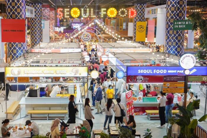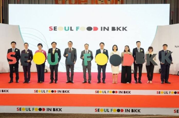 งาน ‘Seoul Food in Bangkok’ จัดขึ้นที่ไอคอนสยาม สถานที่ท่องเที่ยวสำคัญในกรุงเทพฯ เพื่อช่วยให้บริษัทเกาหลีขยายตลาดสู่เอเชียตะวันออกเฉียงใต้ เนื่องจากประเทศไทยเป็นประเทศเศรษฐกิจใหญ่อันดับสองในอาเซียน นิทรรศการ B2B จัดขึ้นตั้งแต่วันที่ 18 ถึง 20 ตุลาคม โดยมีบริษัทเข้าร่วมกว่า 92 ราย ที่ทรู ไอคอน ฮอลล์ (TRUE ICON HALL) ชั้น 7 ขณะที่ร้านป๊อปอัพ B2C จะจัดตั้งแต่วันที่ 18 ตุลาคม ถึง 3 พฤศจิกายน เป็นเวลา 17 วัน โดยมีบริษัท 31 แห่งเข้าร่วมที่สุขสยาม (SOOKSIAM) ชั้น G ไอคอนสยาม ในช่วงนิทรรศการ B2B มีผู้แทนจากเครือข่ายการจัดจำหน่ายหลักในอาเซียนและเอเชียตะวันออกเฉียงใต้ 300 ท่าน ได้รับเชิญให้เข้าร่วมประชุมธุรกิจเพื่อการส่งออก โดยมุ่งเน้นที่ผลิตภัณฑ์ที่มีความต้องการสูง นิทรรศการคาดว่าจะสามารถจัดการประชุมทางธุรกิจรวมทั้งหมด 1,600 ครั้ง ส่วนร้านป๊อปอัพ B2C ที่ตั้งอยู่ในสุขสยาม ชั้น G ซึ่งเป็นพื้นที่ในไอคอนสยามที่มีผู้เยี่ยมชมมากที่สุด ได้เปิดโอกาสให้บริษัทอาหารและเครื่องดื่มและการค้าปลีกสามารถเข้าถึงลูกค้าประมาณ 200,000 ราย และสามารถสร้างยอดขายผลิตภัณฑ์ได้ถึง 400,000 เหรียญสหรัฐ หรือ 13,507,002 บาท นอกจากนี้ กิจกรรม ‘Soul Spot’ ซึ่งมี AI นำเที่ยวอธิบายสถานที่ท่องเที่ยวในกรุงโซล ก็ได้รับความนิยมเช่นกัน ซึ่งเกิดจากความร่วมมือกับรัฐบาลกรุงโซล