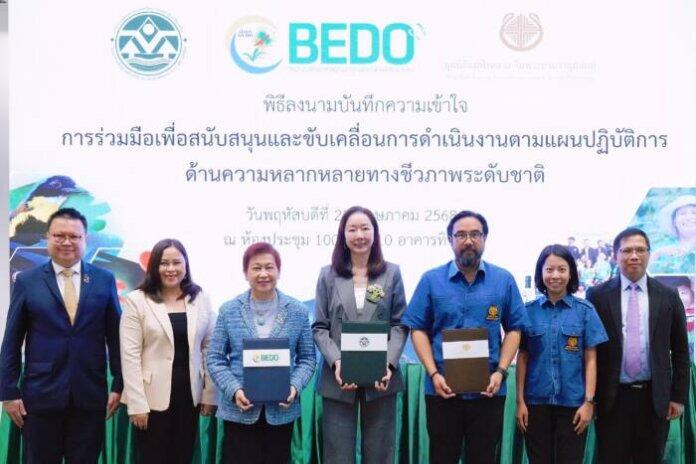ท่ามกลางความท้าทายด้านปัญหาสิ่งแวดล้อมที่ทำให้ ความหลากหลายทางชีวภาพ กลายเป็นวาระสำคัญระดับโลก มูลนิธิแม่ฟ้าหลวง ในพระบรมราชูปถัมภ์ ซึ่งมีบทบาทโดดเด่นด้านการอนุรักษ์และฟื้นฟูทรัพยากรธรรมชาติ จึงได้รับเชิญจาก สำนักงานนโยบายและแผนทรัพยากรธรรมชาติและสิ่งแวดล้อม (สผ.) และสำนักงานพัฒนาเศรษฐกิจจากฐานชีวภาพ (องค์การมหาชน) (สพภ.) ให้เข้าร่วมเป็นภาคีในฐานะผู้ขับเคลื่อนภาคปฏิบัติ (Implementation Partner) ภายใต้ บันทึกความเข้าใจ (MOU) เพื่อสนับสนุนการขับเคลื่อน แผนปฏิบัติการด้านความหลากหลายทางชีวภาพระดับชาติ (NBSAP) ให้เกิดผลเป็นรูปธรรมในระดับพื้นที่ โดยพิธีลงนามบันทึกความเข้าใจจัดขึ้น ณ สำนักงานนโยบายและแผนทรัพยากรธรรมชาติและสิ่งแวดล้อม เมื่อวันก่อน โดยมี หม่อมหลวงดิศปนัดดา ดิศกุล เลขาธิการและประธานเจ้าหน้าที่บริหาร มูลนิธิแม่ฟ้าหลวงฯ ร่วมกับ ดร.ชญานันท์ ภักดีจิตต์ เลขาธิการ สผ. และนางสุวรรณา เตียรถ์สุวรรณ ผู้อำนวยการ สพภ. ร่วมลงนาม เพื่อยืนยันความร่วมมือในการผลักดัน NBSAP พ.ศ. 2566–2570 ซึ่งเป็นแผนระดับชาติ ฉบับที่ 5 ของประเทศไทย ให้บรรลุเป้าหมายอย่างสอดคล้องและยั่งยืน
