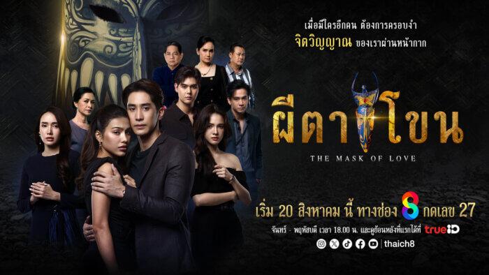 ได้เวลาพบกับความเร้นลับสุดสะพรึง เมื่อสถานีโทรทัศน์ช่อง 8 ในเครือ อาร์เอส กรุ๊ป ส่งละครผีตาโขน ละครสุดเข้มข้นแนวเมโลดราม่า ที่เป็นเรื่องราวของความลับที่รอการพิสูจน์ งานนี้ได้นางเอกป้ายแดง หนูดี อรปรียา เนซ่า มามูดี้ สาวเก่งลูกครึ่ง ไทย-อิหร่าน ดีกรีอดีต มิสแกรนด์อ่างทอง 2022 และรองอันดับ 3 มิสแกรนด์ไทยแลนด์ 2022 มาประเดิมในเส้นทางการเป็นนักแสดงเต็มตัว ประกบกับพระเอกขวัญใจวัยรุ่นเจนใหม่ ไกด์ กันตพล ชมพูพันธ์ เท่านั้นยังไม่พอยังได้นักแสดงมากความสามารถ มิเชล เบอร์แมน มารับบทวิญญาณที่ถูกพันธนาการในหน้ากากผีตาโขนสีน้ำเงิน รอทวงคืนความยุติธรรม ร่วมด้วยนักแสดงมากความสามารถล้นจอ ไม่ว่าจะเป็น ตะวัน ณวินวิชญ์, ต้นข้าว อาร์สยาม, อัยยา อารียา, ตฤณ เศรษฐโชค, ขวัญ ขวัญฤดี, ปู นาตยา, เอ็ม อรรถพล, จอร์จ ฐปนัท ฯลฯ บทประพันธ์โดย บุษบาบัณ บทโทรทัศน์โดย กัญจน์รวี เริ่มตอนแรก วันพุธที่ 20 สิงหาคม 2568 ออกอากาศทุกวันจันทร์-พฤหัสบดี  เวลา 18.00 น. ทางช่อง 8 กดเลข 27 สามารถรับชมย้อนหลังที่แรกที่เดียวที่ TrueID ผ่าน 3 ช่องทางแอปพลิเคชัน, เว็บ และกล่อง TrueID TV ดูฟรีทุกเครือข่าย