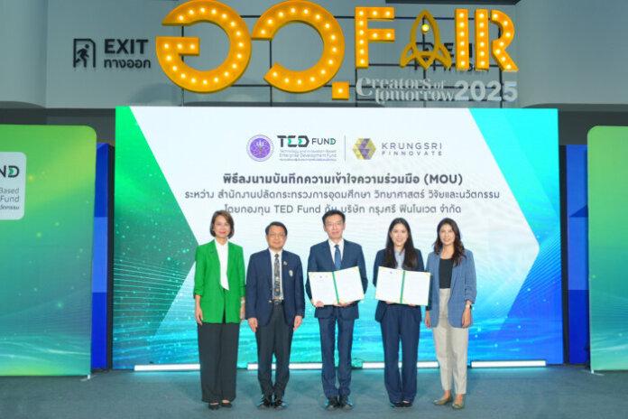 กรุงศรี ฟินโนเวต (Krungsri Finnovate) และ สำนักงานปลัดกระทรวงการอุดมศึกษา วิทยาศาสตร์ วิจัยและนวัตกรรม (สป.อว.) โดยกองทุนพัฒนาผู้ประกอบการเทคโนโลยีและนวัตกรรม (สกน.) หรือ TEDFund ได้ลงนามบันทึกความเข้าใจ (MOU) เพื่อร่วมมือกันผลักดันสตาร์ทอัพไทยให้เติบโตและพร้อมก้าวสู่เวทีการลงทุนระดับสากล
