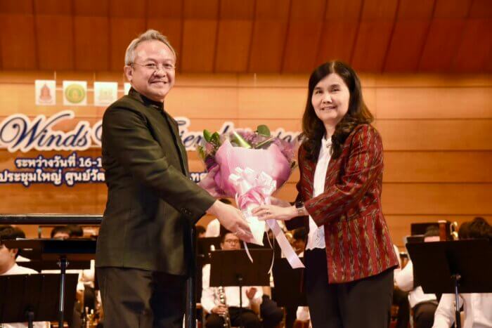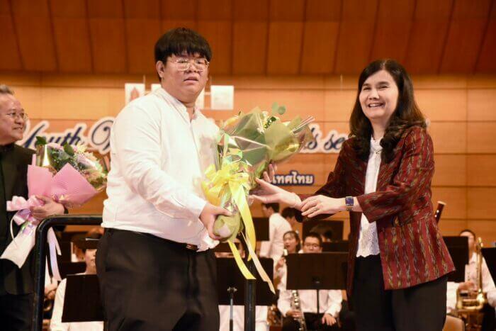 ในช่วงท้ายของการแสดง นางยุถิกา อิศรางกูร ณ อยุธยา ได้มอบช่อดอกไม้ให้แก่ (1) ดร.นิพัต กาญจนหุต วาทยกร (2) Professor Ricky Badua วาทยกรรับเชิญจากสหรัฐอเมริกา (3) นายจิณณวัตร มั่นทรัพย์ ผู้เชี่ยวชาญเครื่องดนตรีทูบา (4) นายรุ่งรดิศ จันทร์จ าปา ผู้เชี่ยวชาญเครื่องดนตรียูโฟเนียม/ผู้จัดการวง และ (5) นายสุมมัส พุทธา ตัวแทนสมาชิกวงดุริยางค์เครื่องลมเยาวชนไทย พร้อมทั้งถ่ายภาพร่วมกันก่อนจบการแสดง