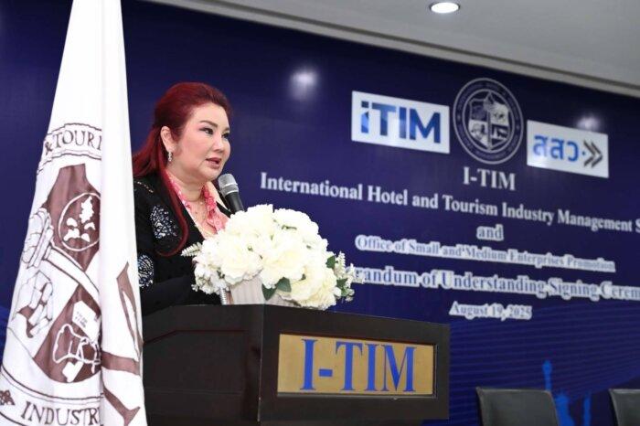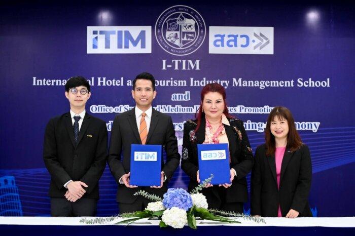 ด้าน นายธนวัง ศรีนันทพันธ์ ประธานเจ้าหน้าที่บริหาร โรงเรียนการจัดการโรงแรมและการท่องเที่ยวนานาชาติ กล่าวว่า สถาบันไอทิม ขอขอบคุณ สสว. ที่ไว้วางใจและร่วมเป็นพันธมิตรเพื่อผลักดันสิทธิพิเศษให้แก่ผู้ประกอบการกลุ่มโรงแรมและการท่องเที่ยว รวมถึงผู้ประกอบการอื่นๆ ที่สนใจ โดยกลุ่มโรงแรม ร้านอาหาร และธุรกิจท่องเที่ยว สถาบันไอทิม เชื่อว่าการ Upskill และ Reskill ผู้ประกอบการ และ บุคลากรด้านการท่องที่ยวและบริการ คือหัวหัวใจที่จะทำให้ SME ไทยเติบโต แข่งขันได้ และสร้างความประทับใจแก่ผู้มาเยือนจากทั่วโลก สถาบันไอทิม มีความมุ่งมั่นที่จะสนับสนุนผู้ประกอบการ SME ไทยให้เติบโตอย่างแข็งแกร่งและยั่งยืน ผ่านองค์ความรู้ คอร์สอบรมต่างๆ ที่ออก แบบมาให้เหมาะสมกับแต่ละมิติของการดำเนินธุรกิจ อาทิ คอร์สเศรษฐศาสตร์การจัดการโรงแรม (HM-CU) คอร์สเทคโนโลยีการโรงแรม (DH-CU) และคอร์สบริหารจัดการทรัพยากรมนุษย์ (HR-TU) ตลอดจน คอร์สจัดการรายได้โรงแรม, คอร์สบริหารบัญชีและการเงินโรงแรม, คอร์สธุรกิจคาเฟ่, คอร์สบริหารและการตลาดร้านอาหาร รวมไปถึงคอร์สอบรมพนักงานโรงแรม รวมแล้วกว่า 250 คอร์ส บนแพลตฟอร์มไอทิมพลัส ([http://www.itmplus.com)]www.itmplus.com) จะช่วยให้ธุรกิจโรงแรมและการท่องเที่ยว สามารถเพิ่มรายได้ ลดต้นทุน ยกระดับประสิทธิภาพ สร้างมาตรฐานสากล พร้อมเติบโตได้อย่างมั่นคง และเชื่อมั่นว่า ความร่วมมือครั้งนี้จะเป็นอีกก้าวสำคัญในการร่วมกันขับเคลื่อนเศรษฐกิจของประเทศผ่านการเสริมสร้างศักยภาพของผู้ประกอบการไทยให้เติบโตอย่างยังยืนและครอบคลุมทุกภาคส่วน
