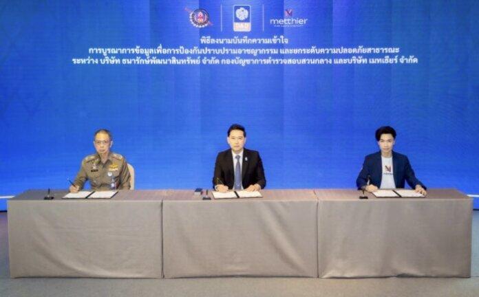 เมื่อวันที่ 28 สิงหาคม 2568 บริษัท ธนารักษ์พัฒนาสินทรัพย์ จำกัด (DAD Asset Development) ร่วมกับกองบัญชาการตำรวจสอบสวนกลาง (บช.ก.) และบริษัท เมทเธียร์ จำกัด ลงนามบันทึกความเข้าใจ (MOU) ว่าด้วยความร่วมมือด้านการบูรณาการข้อมูลเพื่อป้องกันและปราบปรามอาชญากรรม พร้อมยกระดับมาตรการรักษาความปลอดภัยภายในศูนย์ราชการเฉลิมพระเกียรติ ๘๐ พรรษา ๕ ธันวาคม ๒๕๕๐ ณ อาคารธนพิพัฒน์ ศูนย์ราชการเฉลิมพระเกียรติฯ ถนนแจ้งวัฒนะ