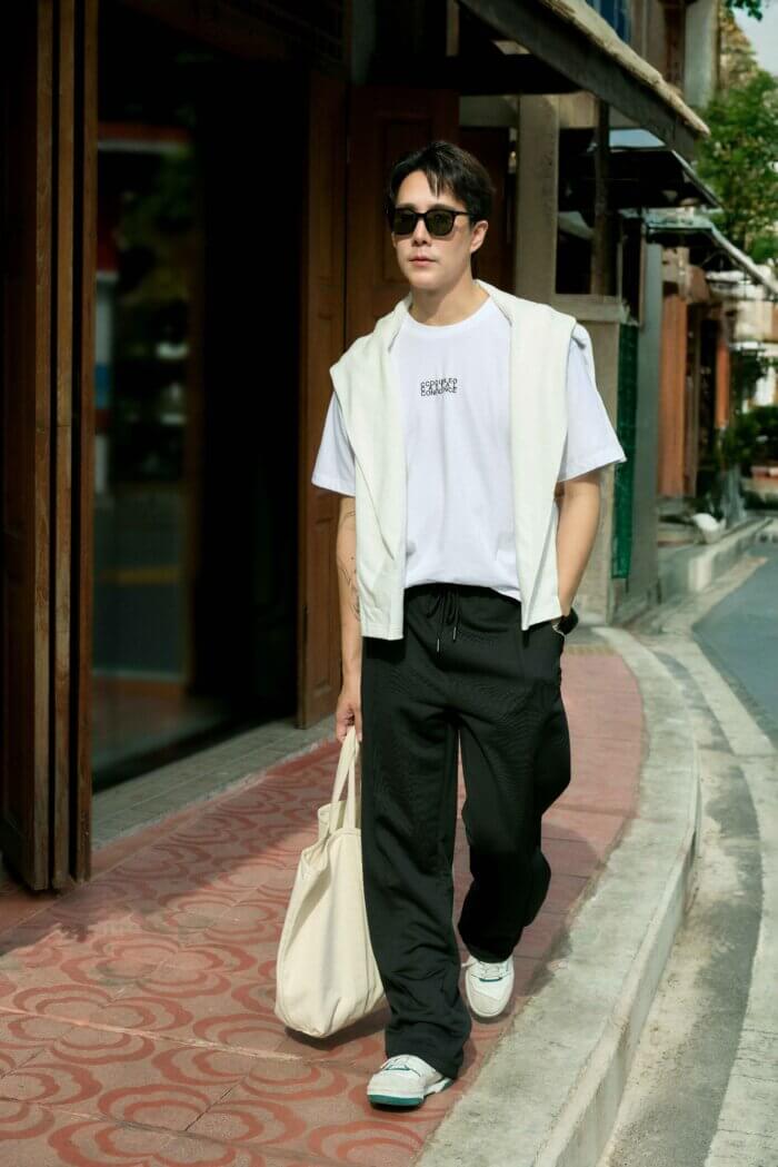 เขื่อน-ภัทรดนัย เสตสุวรรณ ตัวแทนของความหลากหลายและพื้นที่อบอุ่นให้กับคนรุ่นใหม่ เลือกคาร์ดิแกนมาเลเยอร์คล้องคอทับเสื้อยืดสีขาว พร้อมหยิบกางเกง Sweat pants มาเพิ่มความแคลชวลให้กับลุคนี้ ปิดท้ายด้วยหนุ่มหล่อมาดเข้มที่แฝงไปด้วยความทะเล้น เฟย-ภัทร เอกแสงกุล มาในลุคเท่ๆ กับการแมตช์สีดำทั้งเสื้อยืดและกางเกงเดนิมทรง Straight เติมลูกเล่นด้วยเข็มขัดสไตล์ Western ให้ลุคเท่ เข้ม แต่มีกลิ่นอายของความสบายแฝงอยู่