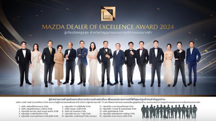 สำหรับรางวัลอังทรงเกียรติ Mazda Dealer of Excellence Awards 2024 แบ่งออกเป็น 3 ประเภท ประกอบด้วย รางวัลสูงสุด คือ ประเภท Gold จำนวน 5 รางวัล, รางวัลประเภท Silver จำนวน 5 รางวัล และรางวัลประเภท Bronze จำนวน 5 รางวัล นอกจากนี้ ภายในงานฯ ยังได้มีพิธีมอบรางวัล Guild Awards ประเภทฝ่ายขายและฝ่ายบริการหลังการขายยอดเยี่ยม ให้กับทีมงานของผู้จำหน่ายที่ปฏิบัติงานด้วยความเป็นเลิศอีกด้วย สิ่งเหล่านี้แสดงให้เห็นถึงความร่วมแรงร่วมใจของผู้จำหน่ายและทีมงาน ที่ทำงานร่วมกันอย่างแข็งขันภายใต้ปณิธานเดียวกัน “One Mazda One Team” เพื่อส่งมอบประสบการณ์ที่ดีที่สุดให้กับลูกค้าในประเทศไทย ภายใต้บรรยากาศแห่งความอบอุ่น เป็นกันเอง ซึ่งมีทั้งบุคลากรจากมาสด้า เซลส์ และผู้จำหน่ายมาสด้า ร่วมงานกันอย่างคับคั่ง