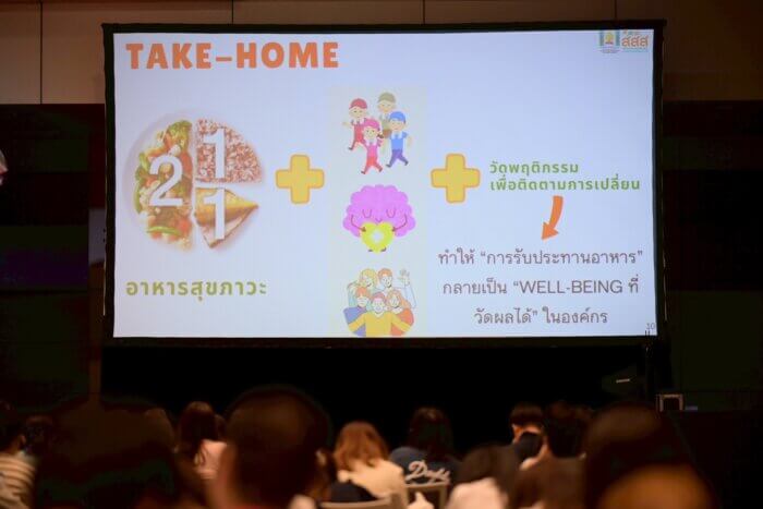 “สสส. ได้จัดกิจกรรมเสริมความรู้และฝึกปฏิบัติการใช้ชุดเครื่องมือให้บุคลากรในสถานประกอบการอย่างต่อเนื่อง พร้อมสนับสนุนสื่อสิ่งพิมพ์และออนไลน์ โดยมีการนำไปใช้อย่างสร้างสรรค์ เช่น การติดตั้งโปสเตอร์ส่งเสริมกิจกรรมทางกาย ลดหวาน มัน เค็ม รวมถึงการใช้ช้อนลดเค็ม ซึ่งเป็นนวัตกรรมที่ภาคีเครือข่ายพัฒนาร่วมกับ สสส. จากการประเมินผล พบว่าผู้เข้าร่วมมีกิจกรรมทางกายเพิ่มขึ้น สามารถลดการบริโภคหวาน มัน เค็ม ค่าดัชนีมวลกาย (BMI) และน้ำหนักตัวลดลงอย่างมีนัยสำคัญ ปัจจัยความสำเร็จส่วนหนึ่งมาจากผู้บริหารสนับสนุนด้านนโยบาย ทำให้เกิดแกนนำสุขภาพภายในองค์กร และเป็นกลไกสำคัญในการกระตุ้นให้พนักงานเกิดการปรับเปลี่ยนพฤติกรรมได้อย่างยั่งยืน” ผศ.ดร.วันดี กล่าว