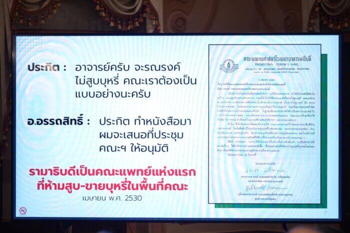 ศ.นพ.ประกิต วาทีสาธกกิจ ประธานมูลนิธิรณรงค์เพื่อการไม่สูบบุหรี่ กล่าวปาฐกถาหัวข้อ “ศาสตราจารย์เกียรติคุณ นายแพทย์อรรถสิทธิ์ เวชชาชีวะ ผู้อยู่เบื้องหลังความสำเร็จในการควบคุมยาสูบในประเทศไทย” ว่า การจัดงานครั้งนี้เพื่อรำลึกถึงคุณูปการของศาสตราจารย์เกียรติคุณ นายแพทย์อรรถสิทธิ์ เวชชาชีวะ อดีตนายกราชบัณฑิตยสถาน ผู้มีบทบาทสำคัญในการริเริ่มและผลักดันการรณรงค์ลดการสูบบุหรี่ในประเทศไทยให้ประสบผลสำเร็จเป็นที่ยอมรับในระดับนานาชาติ ตลอดจนเป็นการเผยแพร่คุณงามความดีของท่านให้สาธารณชนได้ตระหนักถึงจิตวิญญาณแห่งความเสียสละเพื่อส่วนรวม
