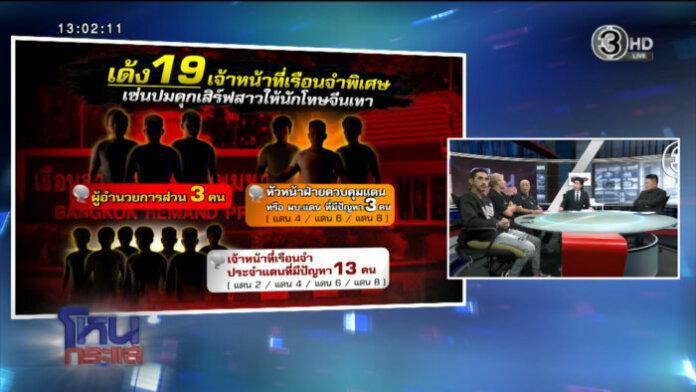 ที่เป็นประเด็นคือเรือนจำกรุงเทพฯ ประเด็นที่หลุดออกมาเป็นประเด็นใหญ่ กล่าวอ้างถึงผบ.เรือนจำว่ามีส่วนเกี่ยวข้อง มีส่วนรู้เห็น ให้ญาติผู้ต้องขังเข้าไปเยี่ยมผู้ต้องขังในวันอาทิตย์ แล้วกลุ่มจีนเทา มีการมอบเงินให้ใครบางคน เพื่อมีสิทธิพิเศษในการปล่อยพลัง เสพสังวาสกับผู้หญิงที่ส่งเข้าไปข้างใน มีการเจอถุงยางอนามัย เจอกระดาษทิชชูติดน้ำอสุจิ ต่างๆ นานา มันน่าตกใจ เรื่องนี้จะบอกว่าไม่จริงก็คงไม่ได้?