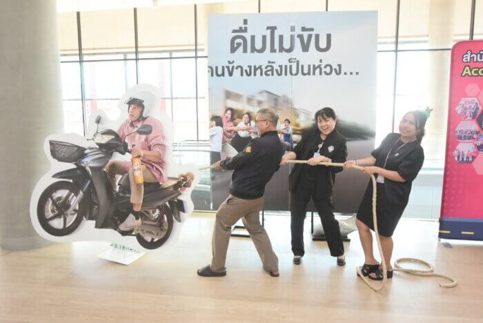 ทั้งนี้ภายในงานมีกิจกรรมให้ความรู้และชุดความรู้เกี่ยวกับการป้องกันและลดอุบัติเหตุจากการดื่มแล้วขับ การกระตุ้นเตือนให้มีสติในการดื่มเครื่องดื่มแอลกอฮอล์ รวมถึงการสื่อสารว่าแม้การดื่มเพียงเล็กน้อยก็สามารถทำให้ขาดสติและเพิ่มความเสี่ยงต่อการเกิดอุบัติเหตุได้ นอกจากนี้ สำนักงานเครือข่ายลดอุบัติเหตุ (สคอ.) ได้จัดกิจกรรมทดสอบสวมแว่นตาจำลองอาการเมาจากการดื่มเครื่องดื่มแอลกอฮอล์ เพื่อให้ผู้ร่วมงานได้สัมผัสผลกระทบของการเมาแล้วขับ