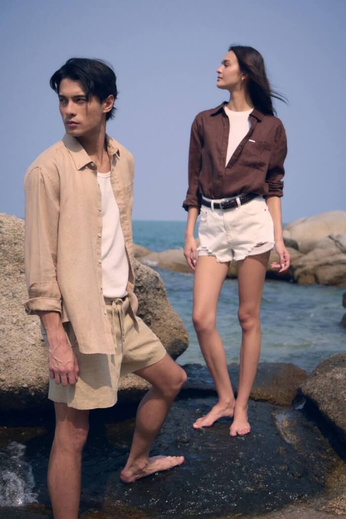 ในส่วนของลุคผู้หญิง แตน – สาธิตา ให้นิยามกับ 2 ลุคสำหรับฤดูร้อนดังนี้ 1) Smart Professional ยกระดับลุควันทำงานแต่ยังคงความคล่องตัวด้วย Linen Sleeveless Tie-Waist Top เสื้อแขนกุดผ้าลินินดีเทลผูกเอวที่ช่วยเสริมสรีระให้ดูเพรียวบาง โดยสามารถนำมาแมตซ์กับกางเกงผ้าลินินสีขาวเพื่อความโก้หรู เพื่อคอลพลีตโททัลลลุค หรือเลือกสวมคู่กับกางเกงยีนส์และรองเท้าส้นสูงคู่โปรดเพื่อเปลี่ยนลุคให้ดูเปรี้ยวและทันสมัยยิ่งขึ้น 2) Chic Casual ปลดล็อกวันพักผ่อนให้โปร่งเบาสบายแต่ยังคงความดูดี ด้วยการเลเยอร์กางเกงขาสั้นทรง Bermuda และเสื้อกล้าม คลุมทับเพิ่มเลเยอร์ด้วย Linen Shirt แบบปลดกระดุมเพื่อให้ได้ลุคที่ดู Effortless และผ่อนคลาย หรือสำหรับสาวๆ ที่วางแผนไปทริปทะเล สามารถเปลี่ยนจากเสื้อกล้ามเป็นบิกินนี่ตัวเก่ง ก็จะได้ลุคบีชแวร์ที่พร้อมสำหรับทุกช็อตภาพประทับใจ