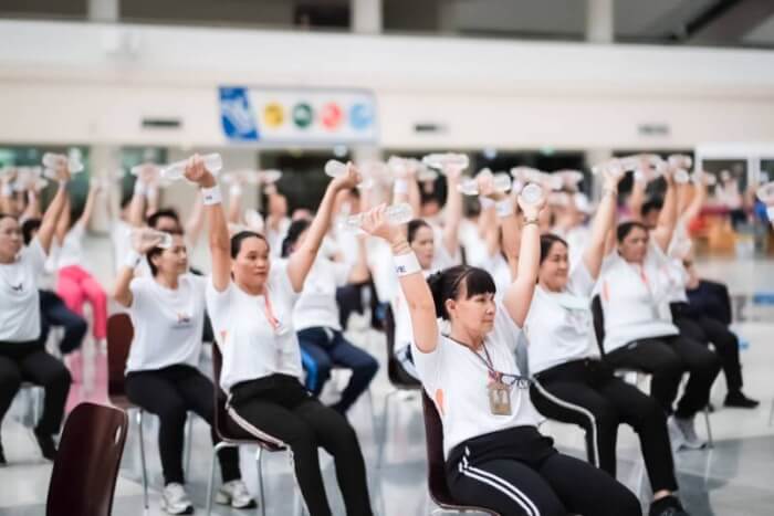 DAD ไม่ทิ้งใคร เดินหน้าตอกย้ำแนวคิดองค์กรสุขภาวะ (Wellness Organization) ยกระดับคุณภาพชีวิตคนทำงานในพื้นที่ ส่งเสริมคุณภาพชีวิตของผู้ปฏิบัติงานในศูนย์ราชการเฉลิมพระเกียรติฯ แจ้งวัฒนะ ชวนบุคลากร แม่บ้านและเจ้าหน้าที่รักษาความปลอดภัยร่วมออกกำลังกายเพื่อสุขภาพ พร้อมดึง “วีเจจ๋า” ร่วมสร้างสีสันและแรงบันดาลใจในการดูแลสุขภาพ