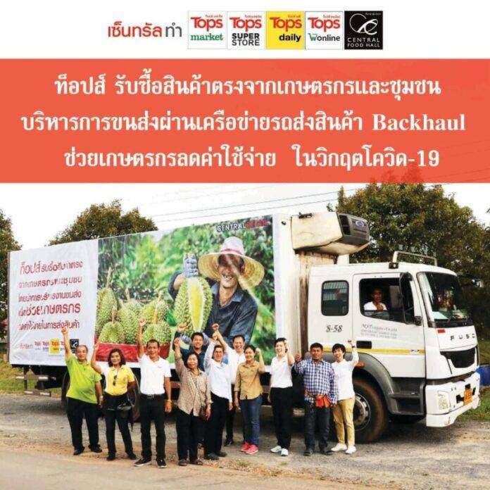 นางสาวเมทินี พิศุทธิ์สินธพ รองกรรมการผู้จัดการใหญ่ เซ็นทรัล ฟู้ด รีเทล ในเครือเซ็นทรัล รีเทล กล่าวถึง ที่มาของ โครงการ “รับซื้อสินค้าตรงจากเกษตรกรและชุมชน บริหารการขนส่งผ่านเครือข่ายรถส่งสินค้า Backhaul” เป็นการนำศักยภาพการบริหารจัดการผ่านเครือข่ายรถขนส่งสินค้าไปยังร้านท็อปส์ทุกสาขาทั่วประเทศ ซึ่งปกติต้องตีรถเที่ยวเปล่ากลับไปยังศูนย์กระจายสินค้าในกรุงเทพฯ ทำให้เกิดแนวคิดเพื่อช่วยเหลือเกษตรกร ผู้ประ กอบการรายย่อย ลดต้นทุนการส่งสินค้า สามารถส่งผลผลิตต่อครั้งได้มากขึ้น ใช้พลังงานเชื้อเพลิงจากการขนส่งให้คุ้มค่า โดยนำจุดแข็งด้านระบบโลจิสติกส์ของบริษัทฯ มาใช้ให้เกิดประโยชน์สูงสุด ซึ่งสอดคล้องกับสถานการณ์ที่เกิดการแพร่ระบาดของไวรัสโควิด-19 ซึ่งเราพบว่าเกษตรกรประสบปัญหาต่าง ๆ เช่น ช่องทางการจำหน่ายสินค้าลดลง ความไม่สะดวกในการเดินทางเพื่อขนส่งสินค้าเนื่องจากติดช่วงเวลาเคอร์ฟิว ประสบปัญหาด้านการส่งออก ปัญหาด้านแรงงาน โครงการดังกล่าวจึงเข้ามาเติมเต็มและแก้ไขปัญหาให้กับเกษตรกรได้อย่างถูกจังหวะและเวลา