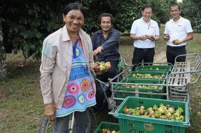 สำหรับเกษตรกรผู้เข้าร่วมโครงการฯ คุณเสาวนีย์ ทองชิว เจ้าของสวนทุเรียน มังคุด และลองกอง จ.จันทบุรี เล่าถึงการดูแลสวนและข้อดีของการมีคนรุ่นใหม่เข้าร่วมโครงการว่า “เดิมสวนของป้าชื่อว่า ‘ไร่บุญมี’ ก่อตั้งมาตั้งแต่สมัยรุ่นพ่อแม่ ซึ่งป้าก็สานต่อทำสวนมาได้ 20 กว่าปีแล้ว โดยสวนนี้มีพื้นที่ 50 กว่าไร่ ปลูกทุเรียน มังคุด และลองกอง ปัจจุบันมีลูกชายและลูกสาวกลับมาช่วยงาน ปรับปรุงและเปลี่ยนแปลงวิธีการทำสวนแบบสมัยใหม่ และคัดเลือกผลผลิตส่งไปยังสหกรณ์การเกษตรเขาคิชฌกูฏ จำกัด เพื่อส่งต่อไปจำหน่ายที่ท็อปส์ รวมถึงมีตลาดเจ้าประจำติดต่อมาเพื่อซื้อขาย ทำให้มีช่องทางจำหน่ายมากขึ้น จากสถานการณ์โควิด-19 สวนป้าก็ได้รับผลกระทบเช่นกัน ทั้งด้านแรงงานที่มีการจำกัดการเดินทาง ทำให้ขาดคนงาน ภาวะภัยแล้ง ทำให้มีค่าใช้จ่ายเพิ่มขึ้น เพราะต้องลงทุนกับการวางระบบน้ำ ซึ่งก็ได้ลูกชายที่เรียนจบด้านวิศวกรรมศาสตร์ นำความรู้มาปรับใช้และกล้าลงทุนกับเครื่องทุ่นแรงแม้มีค่าใช้จ่ายสูง เพื่อเพิ่มศักยภาพให้สามารถดูแลผลผลิตให้ดีขึ้น โดยมังคุดของสวนป้าจะมีความโดดเด่นในเรื่องเนื้อขาว รสชาติหวาน กรอบ เปลือกบาง เมล็ดเล็ก รู้สึกดีใจที่มีรถมารับผลผลิตถึงที่ ทำให้ลดค่าใช้จ่ายได้เยอะเลย
