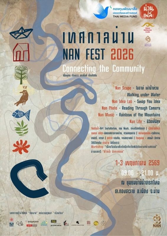 สำนักงานศิลปวัฒนธรรมร่วมสมัย โดย กองทุนส่งเสริมศิลปะร่วมสมัย เชิญชวนเที่ยว “เทศกาลน่าน 2569” Nan Fest 2026 โดยการสนับสนุนจากกองทุนพัฒนาสื่อปลอดภัยและสร้างสรรค์ เพื่อมุ่งเน้นการใช้ศิลปะและวัฒนธรรมเชื่อมโยงผู้คน วันที่ 1-3 พฤษภาคม 2569 ที่ชุมชนบ้านน้ำครกใหม่ ที่เรียกว่า Nan Showcase: หน้าต่างบานใหม่ของน่าน กิจกรรมทั้งหมดจะถูกร้อยเรียง เปิดประสบการณ์ให้ผู้เข้าชมได้สัมผัส “รากเหง้า – ความสร้างสรรค์ – อนาคตของน่าน” ผ่านศิลปะ ดนตรี ภาพถ่าย และนวัตกรรมทางวัฒนธรรมอย่างครบทุกมิติ