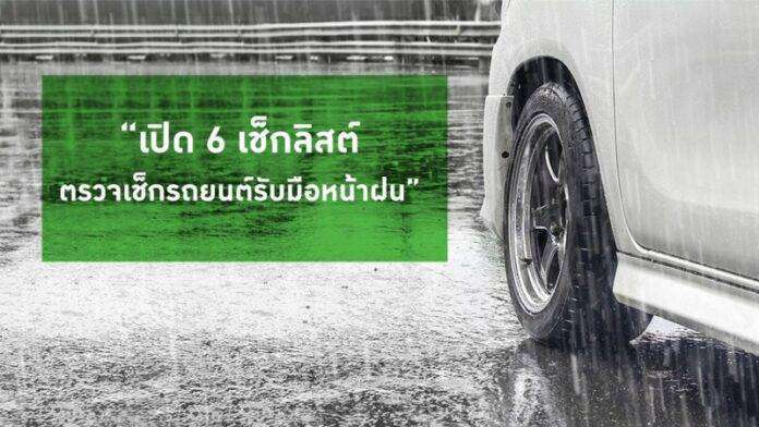 3. ตรวจเช็กระบบปัดน้ำฝน หากปัดแล้วมีคราบน้ำเป็นเส้น ไม่สะอาดใส หรือมีเสียงดังขณะใช้งานควรเปลี่ยนยางปัดน้ำฝนทันที เพราะในกรณีที่ฝนตกหนักและใบปัดไม่สามารถรีดน้ำออกได้อาจเป็นอันตรายในการขับขี่ นอกจากนี้ ควรตรวจเช็กสวิทช์ควบคุม อัตราความเร็วในการปัด หัวฉีดน้ำ และถังพักน้ำ ให้พร้อมใช้งาน