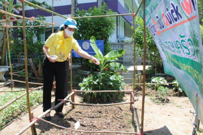 และในโอกาสนี้ นายวัชรเดช เกียรติชานน นายอำเภอบางกรวย และนางรักใจ กาญจนะวีระ พัฒนาการจังหวัดนนทบุรี ได้เชิญชวนให้องค์กรภายในชุมชน ผอ.รพ.สต. ครู นักเรียน และประชาชนในพื้นที่ ร่วมกันปลูกต้นไม้ และปลูกพืชผักสวนครัว เพื่อเป็น “คลังอาหารของชุมชน” พร้อมสาธิตการนำผลผลิตที่ได้มาประกอบอาหารกันสดๆ โดยได้จัดเมนู “ผัดผักบุ้งไฟแดง” จากแปลงผักสวนครัวของหมู่บ้าน ที่นายอำเภอบางกรวย ได้ดำเนินการปลูกตามแผนปฏิบัติการ 90 วัน “ปลูกผักสวนครัว เพื่อสร้างความมั่นคงทางอาหาร” แบ่งปันแจกจ่ายเป็นอาหารกลางวันทานร่วมกัน และกำหนดให้สถานที่ปลูกแห่งนี้เป็นต้นแบบการดำเนินการ “ครัวของชุมชน” ที่จะให้คนทั้งชุมชนได้ใช้บริโภคได้ร่วมกันอีกด้วย