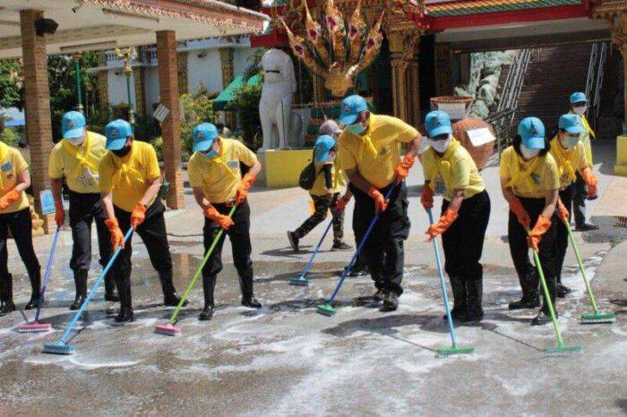 วันที่ 3 มิถุนายน 2563 เวลา 10.00 น. ณ วัดบัวขวัญพระอารามหลวง อำเภอเมืองนนทบุรี จังหวัดนนทบุรี นายสุจินต์ ไชยชุมศักดิ์ ผู้ว่าราชการจังหวัดนนทบุรี เป็นประธานในพิธีกิจกรรมจิตอาสาพัฒนา และกิจกรรมจิตอาสาบำเพ็ญสาธารณประโยชน์ “มีแล้วแบ่งปัน” เนื่องในโอกาสวันเฉลิมพระชนมพรรษาสมเด็จพระนางเจ้าสุทิดา พัชรสุธาพิมลลักษณ พระบรมราชินี นำทีมรองผู้ว่าราชการจังหวัด หัวหน้าส่วนราชการ ข้าราชการ และประชาชนทุกหมู่เหล่า ร่วมกิจกรรมโดยมีกิจกรรมสำคัญในการมอบถุงยังชีพเครื่องอุปโภคบริโภคให้กับผู้แทนภาคประชาชน เพื่อเป็นการช่วยเหลือและแบ่งปันแก่ประชาชนที่ได้รับความเดือดร้อนจากผลกระทบจากการแพร่ระบาดของโรคติดเชื้อไวรัสโคโรนา 2019 ในการนี้ นางรักใจ กาญจนะวีระ พัฒนาการจังหวัดนนทบุรี เข้าร่วมกิจกรรมในครั้งนี้ และร่วมทำความสะอาดบริเวณวัด เพื่อถวายเป็นพระราชกุศลแด่สมเด็จพระนางเจ้าสุทิดา พัชรสุธาพิมลลักษณ พระบรมราชินี เนื่องในโอกาสวันเฉลิมพระชนมพรรษา 3 มิถุนายน 2563