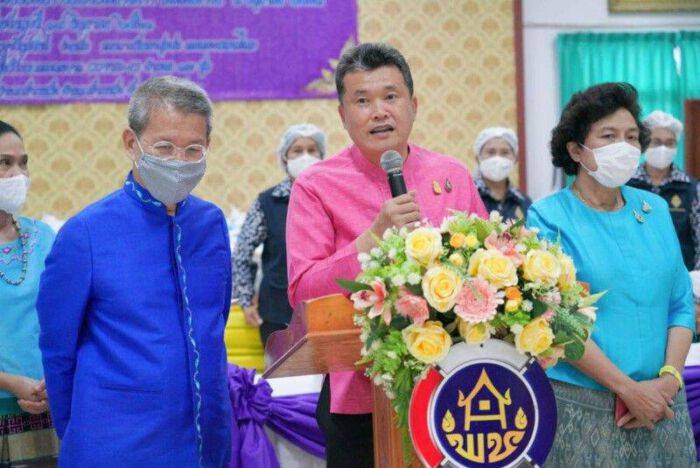 “จังหวัดสมุทรสาครเป็นอีกหนึ่งจังหวัดที่กรมการพัฒนาชุมชนและสภาสตรีฯ ตั้งใจมามอบถุงยังชีพ แม้ว่าจะเป็นส่วนน้อย แต่ด้วยความตั้งใจจริง อยากเห็นทุกคนมีความสุข และมีกำลังใจก้าวผ่านวิกฤตการณ์ต่อไปได้ ขอขอบคุณนายกเหล่ากาชาดจังหวัดสมุทรสาครด้วย ที่ได้นำเครื่องอุปโภคบริโภค ใส่ในถุงยังชีพเพิ่มเติมในถุงผ้าซึ่งมีความแข็งแรง นำไปใช้ต่อเพื่อลดการใช้ถุงพลาสติกได้ ขอฝากพัฒนากรอำเภอ พัฒนากร ในพื้นที่ให้ช่วยดูแลกันและกันกับพี่น้องประชาชน พร้อมกันนั้นก็ขอเชิญชวนทุกคนสวมใส่ผ้าไทยอย่างน้อยสัปดาห์ละ 2 วัน ตามมติ ครม. เมื่อวันที่ 9 มิถุนายนที่ผ่านมาซึ่งรณรงค์ทั่วประเทศร่วมกันใช้ผ้าไทย และจังหวัดสมุทรสาครก็มีผ้าไทยประจำจังหวัดตนเอง จะช่วยส่งเสริมรายได้ชุมชนได้อีกทางหนึ่ง และขอเป็นกำลังใจให้ทุกคนผ่านพ้นวิกฤตการณ์ครั้งนี้ไปได้ด้วยกัน” นายสุทธิพงษ์กล่าว