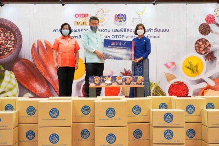 เมื่อวันที่ 19 มิถุนายน 2563 นายสุทธิพงษ์ จุลเจริญ อธิบดีกรมการพัฒนาชุมชน (พช.) กระทรวงมหาดไทย เป็นประธานในพิธีส่งมอบสินค้าต้นแบบ และแถลงผลการดำเนินงาน ภายใต้ “โครงการยืดอายุผลิตภัณฑ์ OTOP อาหารถิ่นรสไทยแท้” ณ ห้องประชุม 3003 กรมการพัฒนาชุมชน โดยมี ดร.วันดี กุญชรยาคง จุลเจริญ ประธานสภาสตรีแห่งชาติ ในพระบรมราชินูปถัมภ์ นางนิตยา พิระภัทรุ่งสุริยา รองผู้อำนวยการสถาบันอาหาร และสื่อมวลชน เข้าร่วมงาน โดยโครงการดังกล่าวเป็นความร่วมมือระหว่างกรมการพัฒนาชุมชน และ สถาบันอาหาร ในการใช้เทคโนโลยีและนวัตกรรม พัฒนาคุณภาพการผลิต การแปรรูป การเก็บรักษา เมนูอาหารที่ผ่านการรับรองมาตรฐานอาหารถิ่นรสไทยแท้ จากโครงการยกระดับมาตรฐานอาหารถิ่นรสไทยแท้ (OTOP Authentic Thai Taste) จัดทำสินค้าต้นแบบเชิงพาณิชย์ สร้างสรรค์เมนูอาหารถิ่นรสไทยแท้ที่มีความโดดเด่นของส่วนประกอบที่มีอัตลักษณ์เฉพาะถิ่น 10 เมนู เพื่อยกระดับและเพิ่มมูลค่าทางการตลาดให้แก่อาหารถิ่นรสไทยแท้ที่เป็นอาหารปรุงสด ให้เป็นอาหารที่มีอายุการเก็บรักษาเพื่อการบริโภคได้ยาวนานขึ้น สะดวกต่อการรับประทานรองรับเทรนด์ในยุคปัจจุบัน พร้อมขยายตลาดสู่เครือข่ายผู้ผลิตอาหารไทยและผู้บริโภค