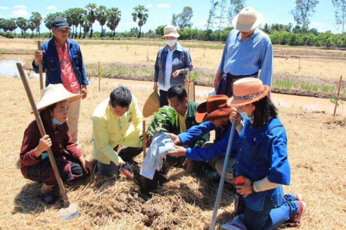 “โคก หนอง นา โมเดล” คือ 1 ในโครงการของกรมการพัฒนาชุมชน กระทรวงมหาดไทย ที่น้อมนำหลักเศรษฐกิจพอเพียงตาม “ศาสตร์พระราชา” มาประยุกต์สู่ “การทำเกษตรทฤษฎีใหม่” โดยแบ่งพื้นที่เป็นสัดส่วน 30 : 30 : 30 : 10 โดย 30% สำหรับแหล่งน้ำ ขุดบ่อทำหนอง ขุดคลองไส้ไก่ 30% ปลูกข้าว 30% ทำโคกหรือป่า 10% สำหรับที่อยู่อาศัยและเลี้ยงสัตว์ซึ่งวันนี้ผมได้นำทุเรียน มะม่วงเบา ไผ่ราชินี เมล็ดข้าวโพด มาร่วมกิจกรรมเอามื้อสามัคคี ซึ่งเป็นการขับเคลื่อนตามแนวทาง ปลูกป่า 3 อย่าง ประโยชน์ 4 อย่าง ปลูกพืชอาหาร แหล่งน้ำ และที่อยู่อาศัย อย่างสมดุลให้เกิดความยั่งยืน