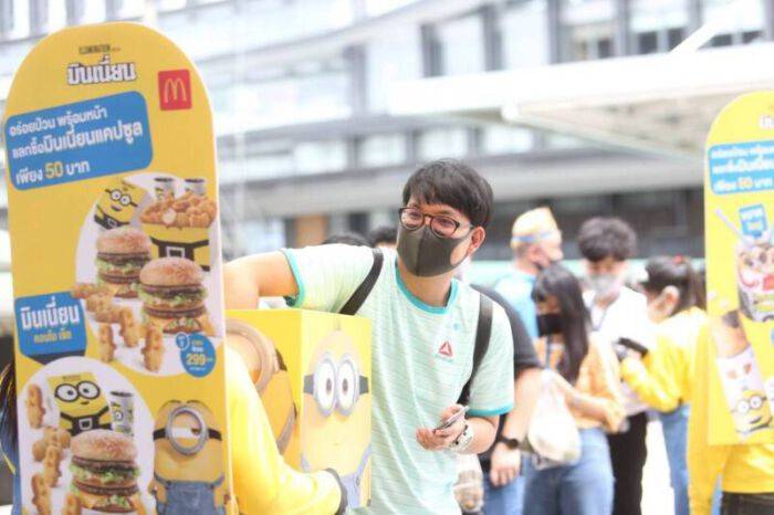 แมคโดนัลด์ จัดกิจกรรม ‘มินเนี่ยนทรูป’ ยกกองทัพความแสบซนของเหล่ามินเนี่ยน จับมือพี่โรนัลด์และผองเพื่อน ตะลุยย่านแลนด์มาร์คที่สวยที่สุดในสาทร โปรโมทแคมเปญ ‘Minions: The Rise of Gru’ ปักหมุดที่ร้านแมคโดนัลด์ สาธร นคร ทาวเวอร์ ต่อเนื่อง ไปยังบางกอกซิตี้ ทาวเวอร์ อาคารเอ็มไพร์ ทาวเวอร์ ตลาดฮ่องกง พลาซ่า อาคารสาทร สแควร์ ทิ้งทวนที่สกายวอล์คแยกนราธิวาส พร้อมกิจกรรมสุดเซอร์ไพรซ์ ลุ้นรับ มินเนี่ยนสีทอง และของเล่นแบบที่ยังไม่วางจำหน่ายก่อนใคร สร้างสีสัน ความสุข สนุกสนานให้กับลูกค้า