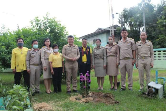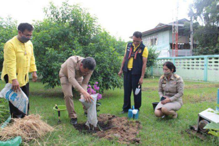 พร้อมกันนี้ อธิบดีกรมการพัฒนาชุมชน ยังได้ปลูกต้นม่วงส่าหรี ซึ่งเป็นไม้ดอกสีม่วง ภายในพื้นที่ รพ.สต.บางขนุน พร้อมทั้งแนะแนวทางการปลูกผักสวนครัวในบริเวณวัดซึ่งยังมีที่ว่าง เช่น ถั่วฝักยาว หรือผักไม้เลื้อยอื่นๆ ไว้ริมคลอง เพื่อเป็นการกระตุ้นให้เกิดการใช้พื้นที่ให้เกิดประโยชน์อย่างสูงสุดอีกด้วย