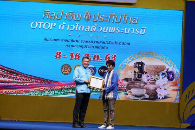 อพช.มอบโล่รางวัลการประกวดผ้าสืบสาน อนุรักษ์ศิลป์ผ้าถิ่นไทย ดำรงไว้ในแผ่นดิน พร้อมมอบเกียรติบัตรเชิดชูเกียรติ ศิลปิน OTOP